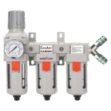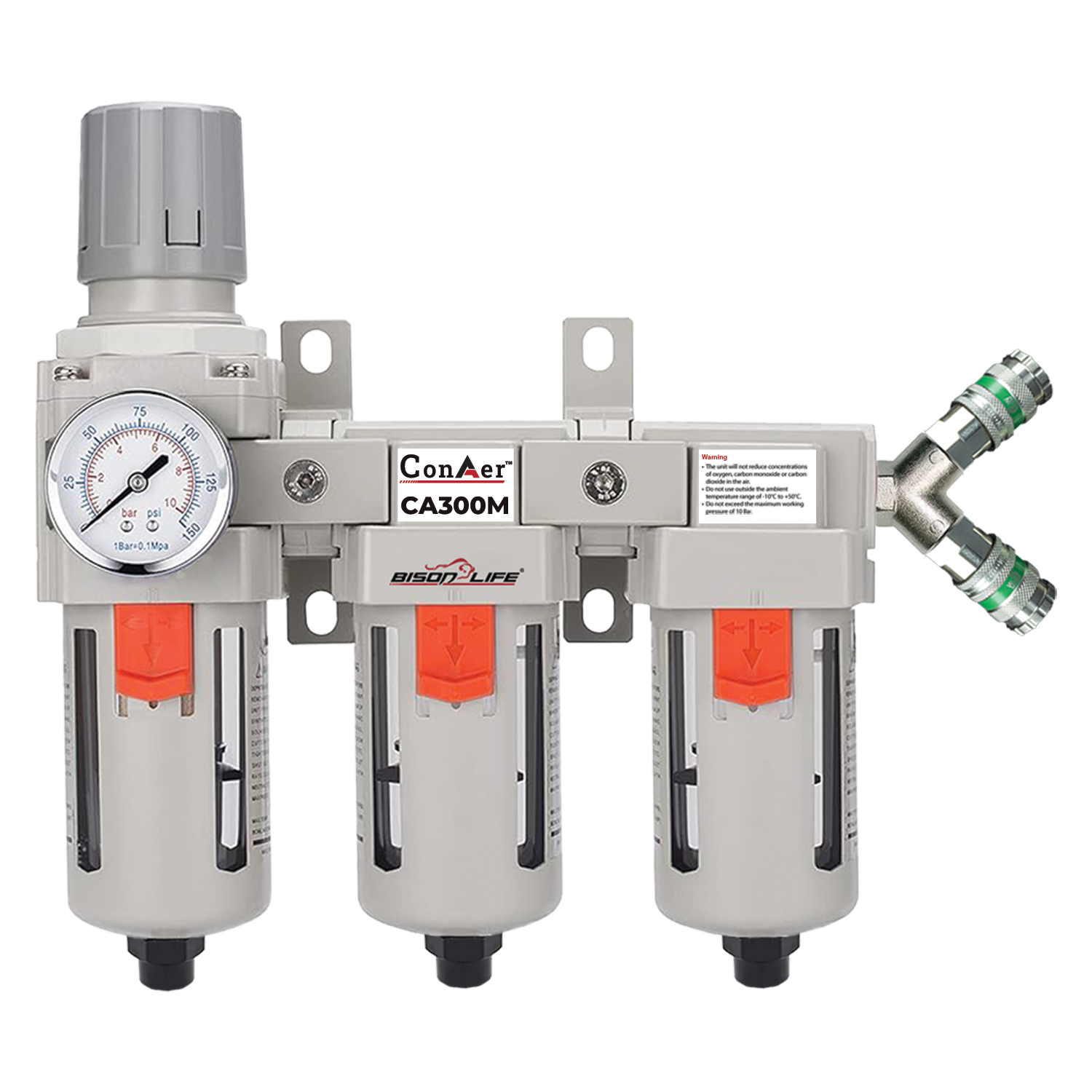 CA300 Three stage filtration Filter and Regulator Panel is a compressed breathing air purifier system designed to help remove or reduce selected contaminants that are found in standard compressed airlines. Comes with manual drain valve.