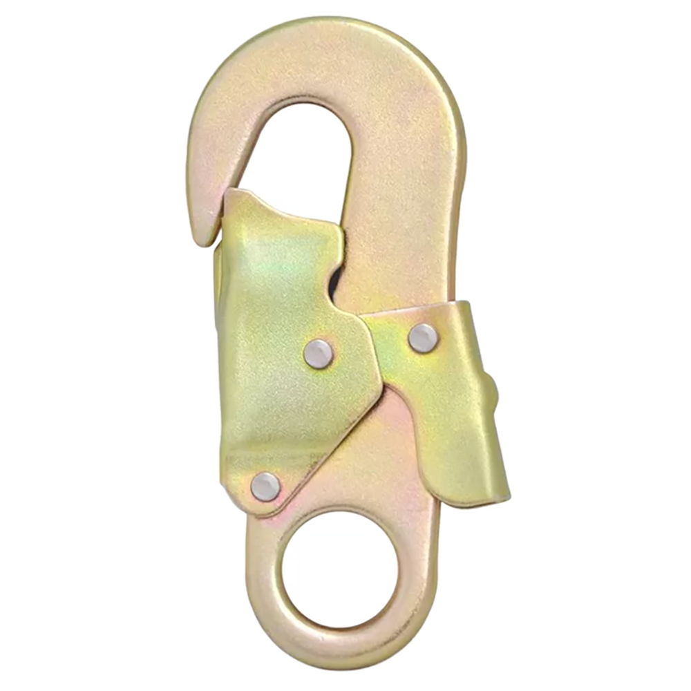 A snap hook is a connector with a spring-loaded gate that automatically closes and locks when released. In the context of a fall arrester.