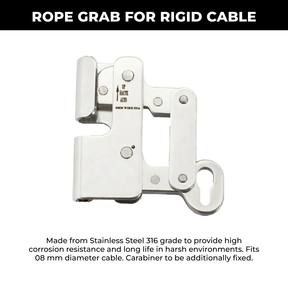 This is a permanent installed lifeline to provide safe ascent & descent of workmen while working on ladders. The system consists of stainless steel āRope Grabā (fall arrester) that moves along with the user on a lifeline. Wire rope made of 8mm diameter stainless steel.