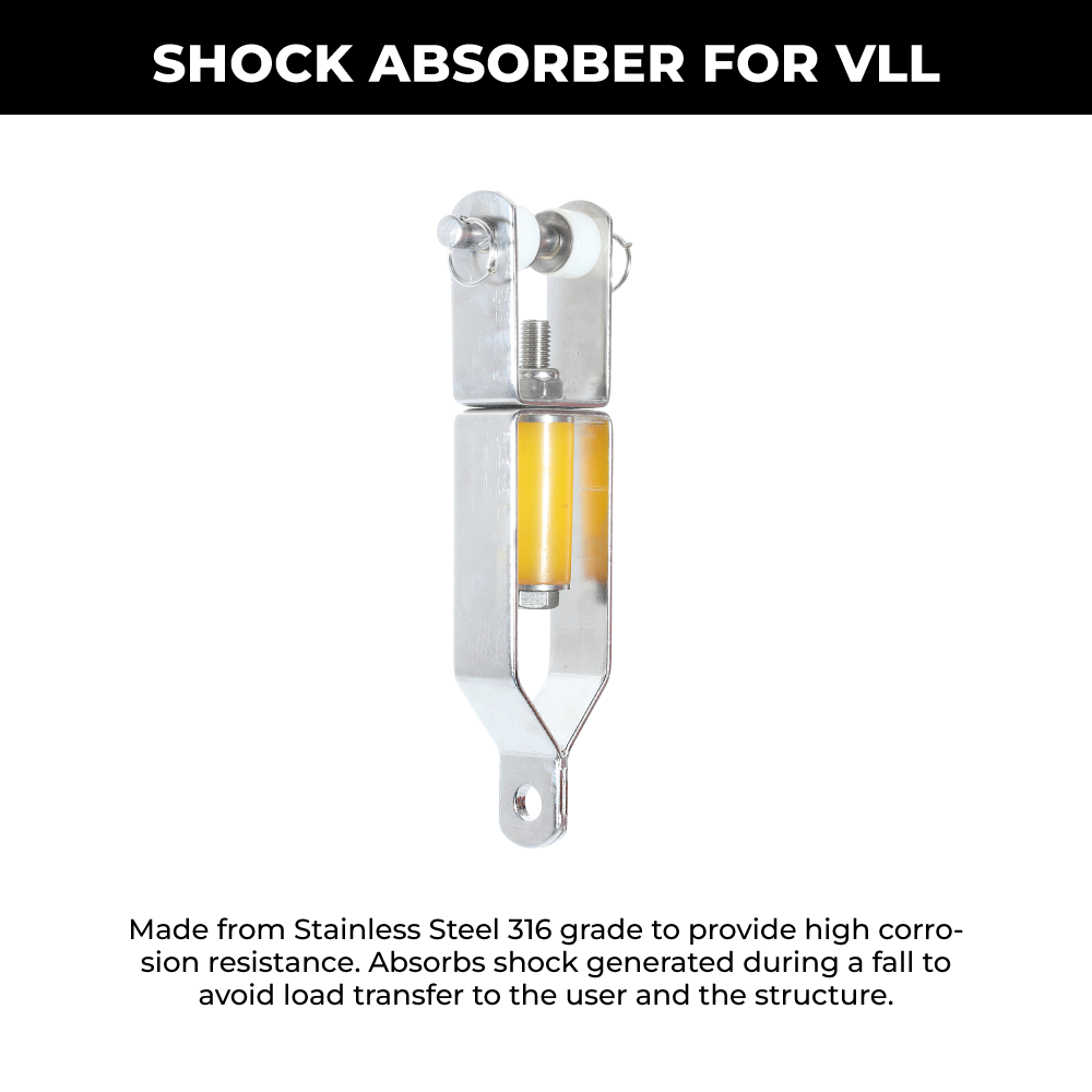The Rope Grab is connected to the workerās harness through carabiner. The system also consists of a shock absorber which is installed at one end of the lifeline. In case of a fall this shock absorber is designed to absorb the shock generated due to the fall and transfers minimum shock to the user and the structure.