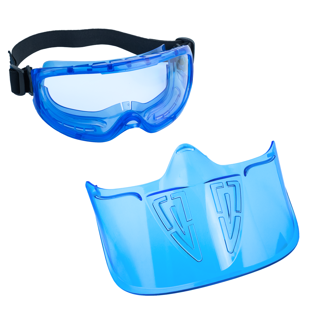 Designed for comprehensive facial protection, this full-face shield offers reliable defense against chemical splashes.